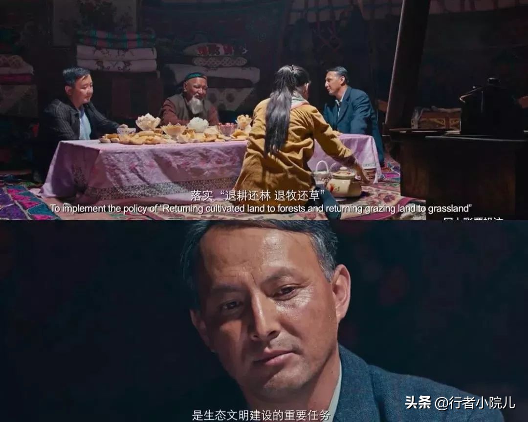 由影片,想到我们所驻柯尔克孜族村的部分老乡,虽然全部搬迁定居到新村来了,但是,就像影片中安土重迁的胡玛尔大叔一样,仍有搬迁之后该以何种方式维系生活、牛羊又该如何喂养的顾虑。即使政府在每一所定居的房子中建立了配套的暖圈,统一科学养殖的合作社,但个别柯尔克孜族老乡仍固执地坚持以传统的方式到山中放牧,而到了转场的季节,再辛苦地来一次大转场。只不过把孩子放在定居的房子生活、受教育,而他们在闲暇的时候再来定居房子生活。我想这就像胡玛尔大叔最后的倔强一样,最终也会在时间的流逝和时代的迅速发展与大变革之中彻底改变。