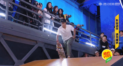 他在一片“好帅”的感叹声中,拿着滑板走向场地边缘,往上爬,最后站定在栏杆上▼▼▼