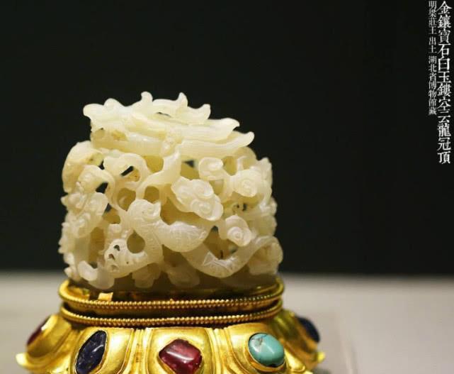 明梁庄王墓出土的金镶宝石白玉镂空云龙冠顶