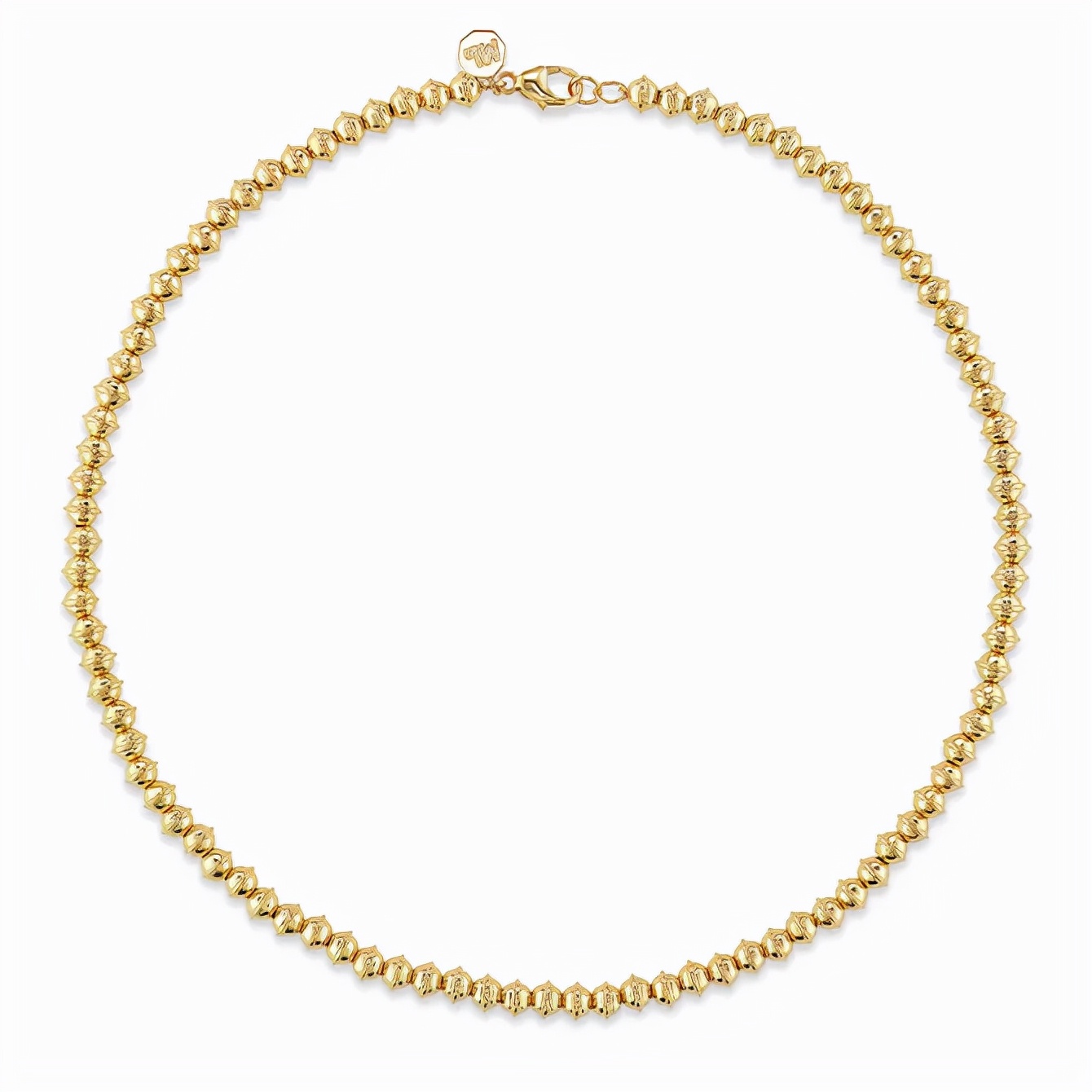 "“carrie 项链”与 yossi harari 项链叠戴 年轻时可能更青睐趣味感设计,比如 yossi harari 的黄金和钻石椒盐脆饼项链,它同时也是纽约的一个味觉象征,20 年后,carrie 选择了更加波西米亚风格的项链来搭配她的“签名项链”,经过岁月沉淀,一些回归自然,更本初的设计则更能打动她。