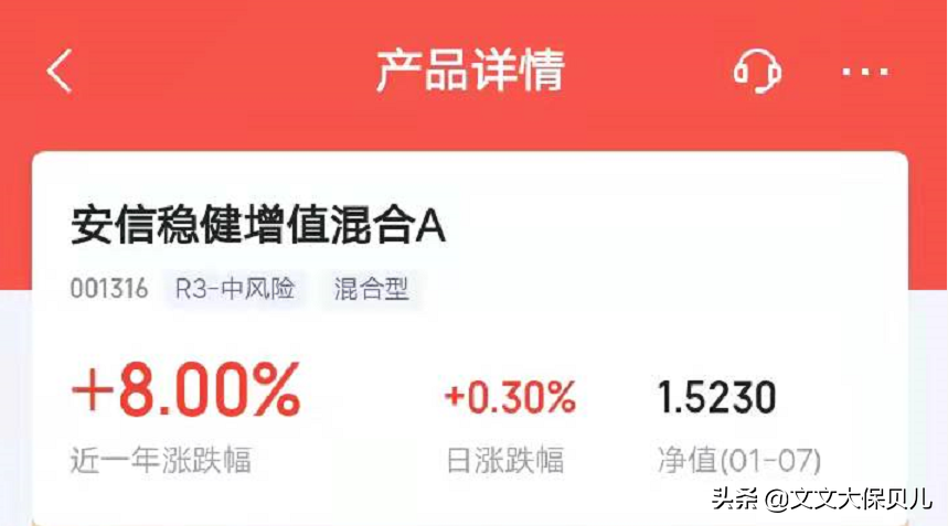 比如说小文子自己在买的“安信稳健增值混合a”(非广告,纯个人持仓分享,不做购买建议):