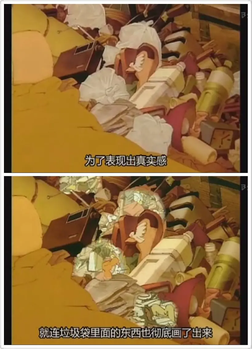 金敏在《东京教父》里也是通过增加细节来增添【真实】感:比如电影画面中出现的成堆的垃圾袋,金敏特意增添了不少细节,我们甚至可以看清楚垃圾袋里面装的是些什么垃圾,而且仔细看还能发现是分好类的。