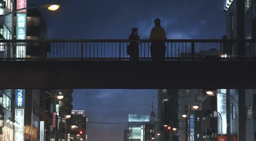 相比于新海诚《天气之子》里让人印象深刻的东京,在金敏的《东京教父》里许多标志性的建筑并没有被特地勾勒出来,要是电影的名字里没有“东京”二字,观众不仔细去看甚至都不能发现这里是东京。