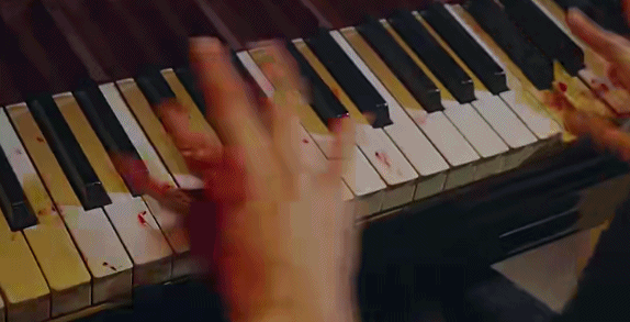 害死父亲后,她又跟精神病似的坐在钢琴前,疯狂演奏一支阴间孝曲。