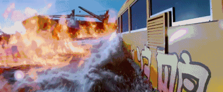 但是大油轮却被大海浪直接截断,而小黄车却安然无恙。