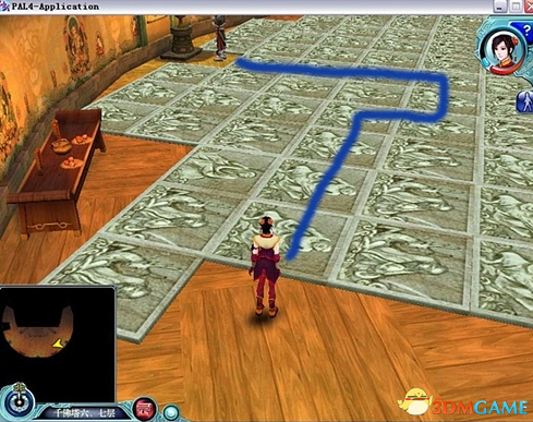 第三层出现机关,地面上白色的砖块,需要走对特定路径才可以通过。