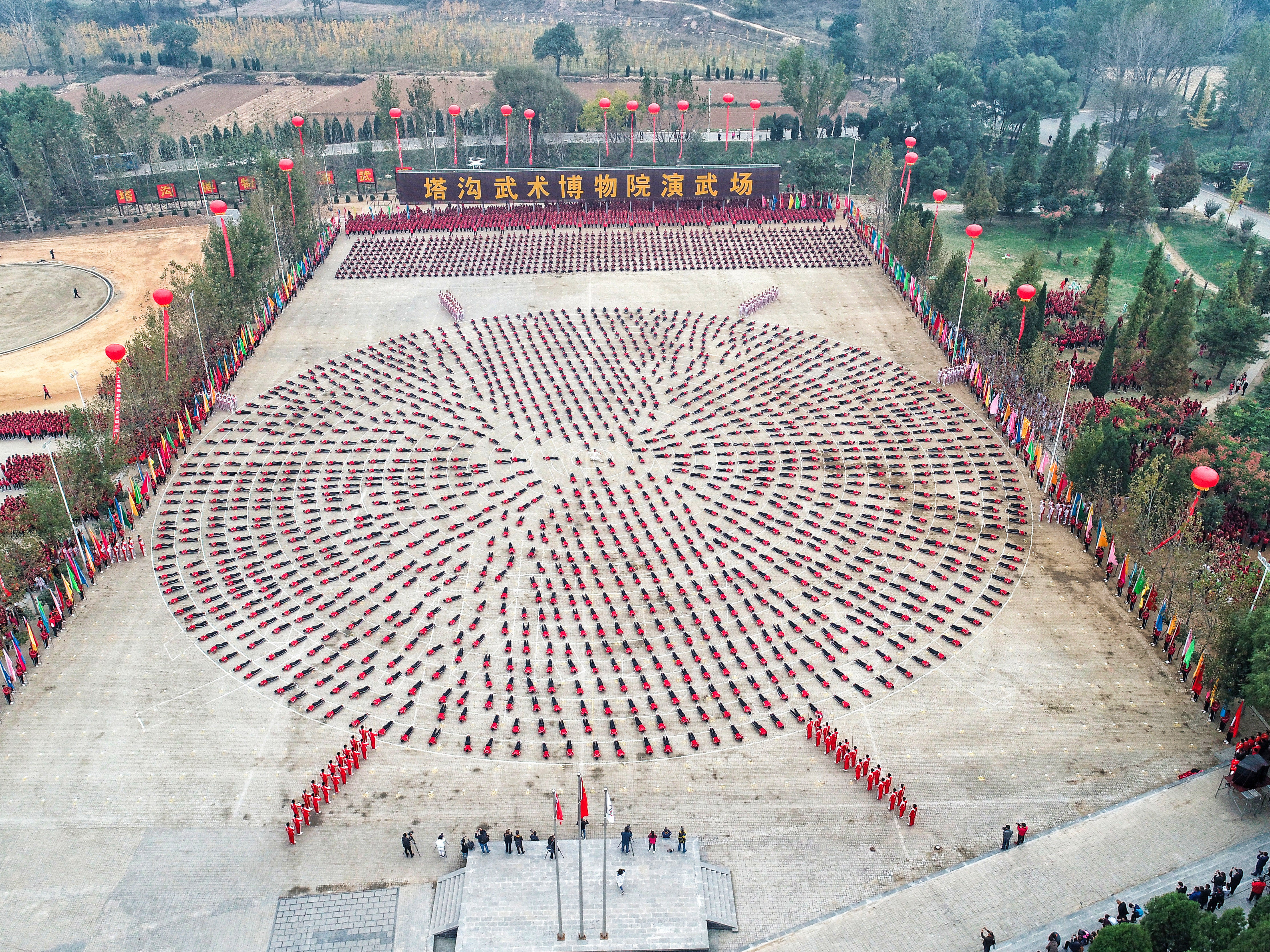 万人共武,吼声震天,这群塔沟小子作为央视春晚常客,这次又将为国内外宾客带来哪些惊喜?10月20日下午,第十二届中国郑州国际少林武术节期间,在少林景区内的塔沟武术博物院演武场,塔沟武校16000余名学员带来了万人团体操《少林功夫》,堪称本届武术节最令人震撼的演出。(河南商报记者 郑超/文 王访贤 宋亚猛/图)