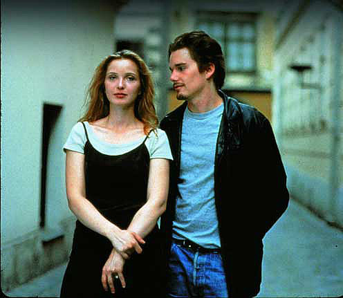 jesse约céline去火车餐车内一起用餐。餐桌上,两个年轻人没有丝毫的陌生感,自然地聊着所有可以想到的事情,谈笑风生,如浴春风。两人又好似两位朗读者,热切地想读懂彼此。一顿饭的功夫,火车停在维也纳,他该下车了,可两人意犹未尽,怎么办?准备下车的jesse突然“疯狂”决定,邀请céline在维也纳一同下车,探索这个未知的城市,开始说走就走的旅行。