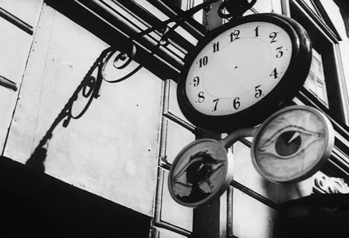 梦境是现实情境的一种心理投射,年近80的伊萨克无人关爱、顾影自怜的现实状况很容易让其产生死亡之梦,这便是孤独感的表征。梦中的伊萨克一个人走在空寂的大街,没有指针的钟表和怀表都表明了时间的虚无,预示着时间的静止与生命的结束。
