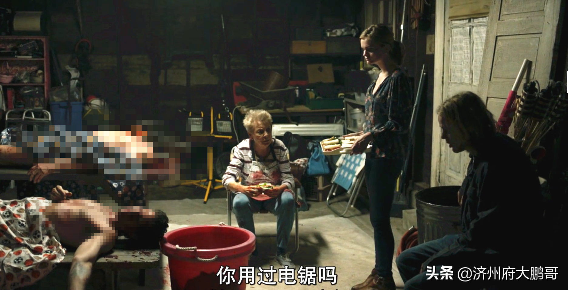 虽然边上就是黑警的无头尸体,桑尼姑妈自在地吃着汉堡,打算用伐木机切割尸体,残忍与温柔,邪恶与正义,雷家族的恶之花,只对坏人绽放。