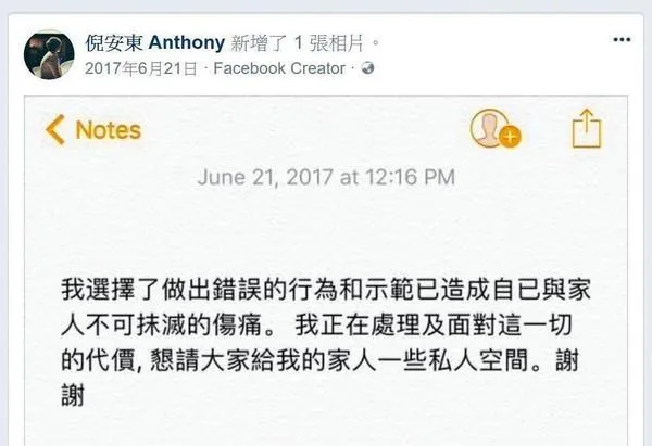 据了解,其实在倪安东曝光隐婚事实后,就曾经闹出多次绯闻。倪安东与对方的聊天记录都被曝光,约女方出去,并且谨慎选择地点,目的不言而喻了。当时这位女子的男友还公开怒呛倪安东,倪安东最后以“我是烂人”致歉,但表示并没有那个意思。妻子vivi为了孩子忍气吞声,最终也原谅了倪安东。