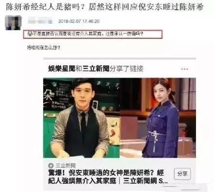 值得一提的是,由于女神级艺人的定位是形象清新,加之与倪安东曾有过接触合作,于是曾一同合作了《爱的面包魂》的陈妍希首当其冲,不过陈妍希马上了发声明否认了。