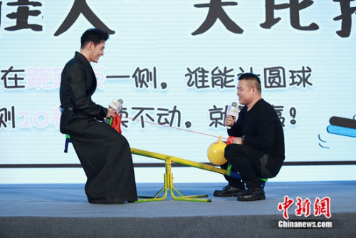 有趣的是,在“撬佳人”大赛环节中,岳云鹏、孙坚分别乘坐跷跷板的一边,各出奇招想让中间的球滚向自己。没想到岳云鹏坐定跷跷板后,孙坚尽管使出浑身解数,跷跷板也在小岳岳的掌控下稳如泰山,气球连一丝一毫都没有移动过,引发全场爆笑。