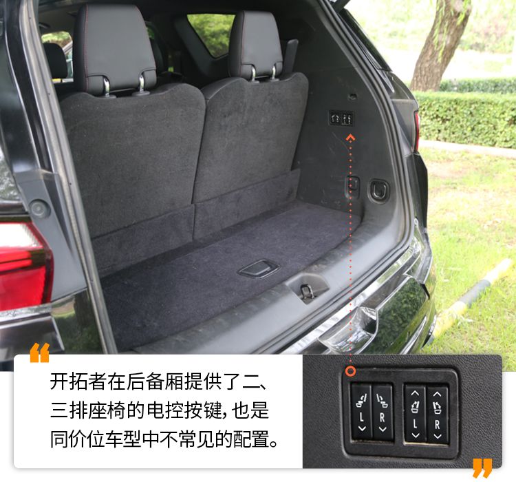 开拓者的轴距为2863毫米,与福特锐界、丰田汉兰达不相上下,在中大型7座suv里并不算太出众。反映在前中后三排空间上也处于同级平均水平,挑不出什么大毛病,尽管以我们身高约1.9米的体验者为标准会稍显局促,但很明显这并不是日常用车时会频繁遇见的情况。