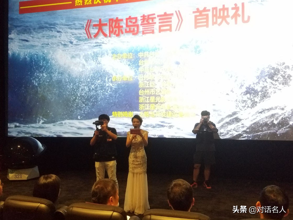 浙江星光电影院线有限公司总经理富海芳,台州一江山印社社长、《大陈岛誓言》总制片人谭文生;导演陈华杰;主演张笑君,航民集团工会主席李林达,上海九星集团马剑勇、花园集团蒋阳红,九三学社方飚,垦荒队长王宗楣,老队员池德杰、刘荷芳、郑永翠、罗永璋、张其元、阮忠法、何经登、金可人、金育育、戴婕媭,吴子熊玻璃艺术馆创始人吴子熊,白领牙科邱志利院长,老兵文化工作委员会华东区主任罗斌,中国管理科学研究院文旅健康管理委员会、浙江区域秘书长王贾晰,搜狐焦点台州站站长黄道宝,董酒公司朱方委,等嘉宾共同出席首映礼。
