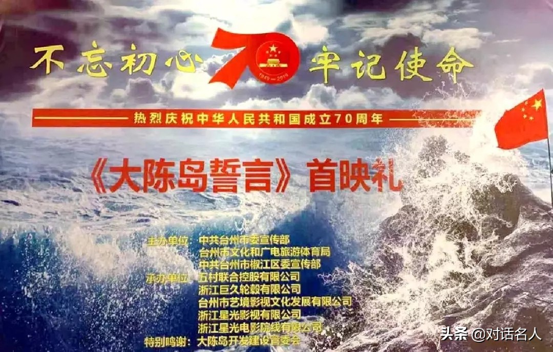 9月23日,由五村联合控股有限公司、浙江巨久轮毂有限公司、台州市艺境影视文化有限公司联合出品的电影《大陈岛誓言》正式登录全国院线。上映当日,在椒江举行首映礼。总制片人谭文生,导演陈华杰,主演张笑君及主创团队,还有十多位大陈岛老垦荒队员们共同参加。