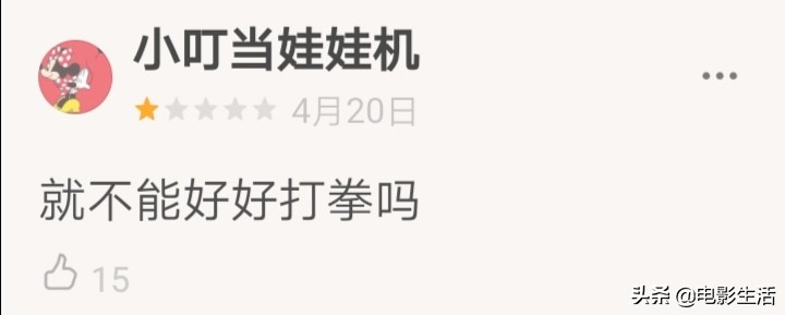 但另一边,和热血沸腾拳击赛场相关的戏码让人特别失望。推动故事发展的情节很狗血,煽情过度,占比也不合理,以至于不少观众打出一星差评。