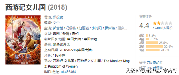 2017年《西游记女儿国》中,演猪八戒,男主冯绍峰,女主赵丽颖,豆瓣评分4.4