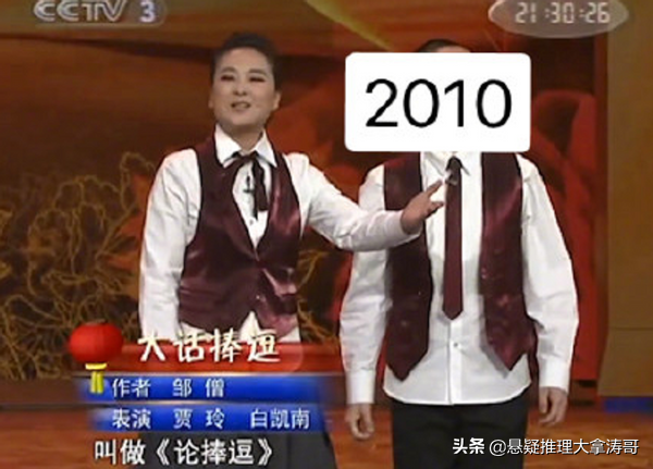 2010年,冯巩徒弟:贾玲和白凯南表演《大话捧逗》敲开了春晚的大门,但没有人记得他俩,因为是零点后播出的相声,还是女相声演员。
