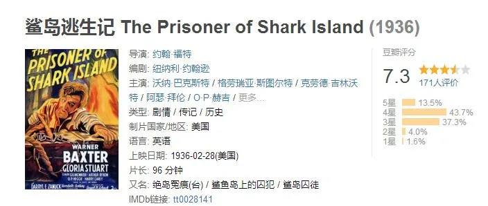 鲨岛是一所监狱,位于美国墨西哥湾,四面环海。不仅如此,监狱四周还有专门的护墙水域,水域里养满了鲨鱼。关在这里的犯人要想逃生,几乎是不可能的。但是有人成功了。1865 年,林肯总统在华盛顿戏院被布斯刺杀。布斯从包厢跳到舞台上逃跑时摔伤了腿,他和同伴连夜冒雨逃亡。路上,他的腿实在坚持不下去了,他们闯进乡村医生萨缪尔?马德的家。马德医生对布斯进行了救治,并不知道林肯总统被刺杀了。布斯悄悄划掉自己靴子上的名字,把它扔在一边。