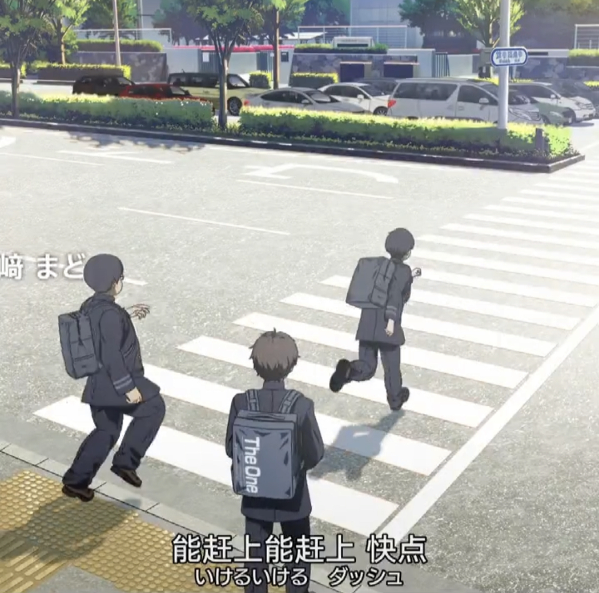 坚书直实和同学们一起过马路,眼看着绿灯马上要变成红灯,其他同学很快冲过了马路,而他站在斑马线前抬了下脚,犹豫着没有过。