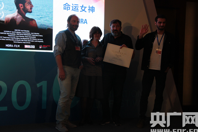 央广网北京4月20日消息(记者 张文静)第六届北京国际电影节天坛奖格鲁吉亚入围影片《命运女神》于20日在北京国际饭店举行媒体见面会,导演廖万·图特别利泽、男主角扮演者帕塔·因奥里以及男配角扮演者扎扎·马加拉斯季维里共同出席见面会,导演妻子梅里·洛勒基帕妮泽也出现在现场。