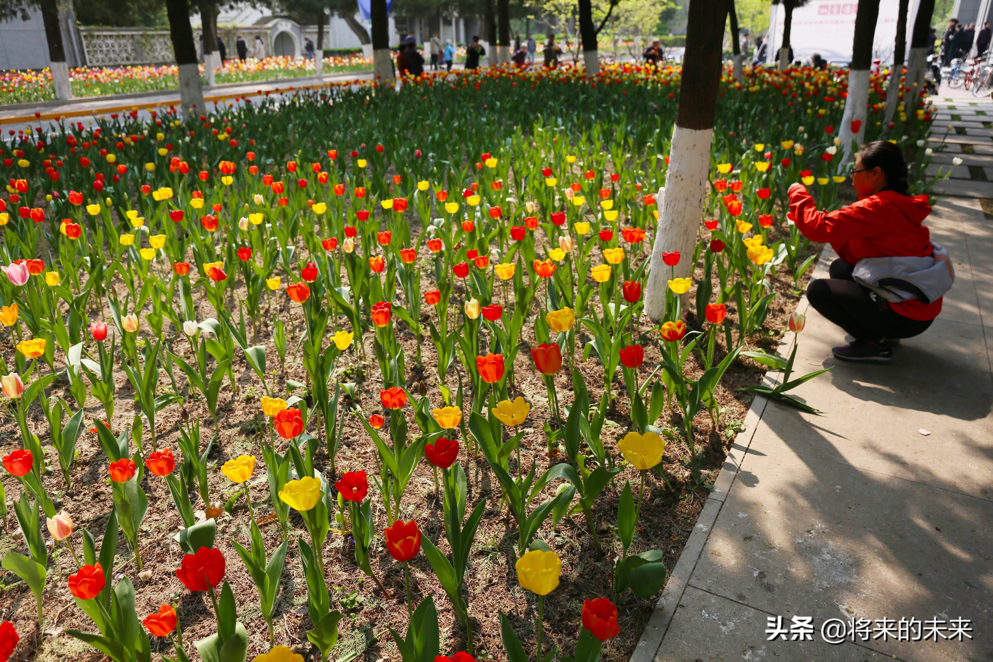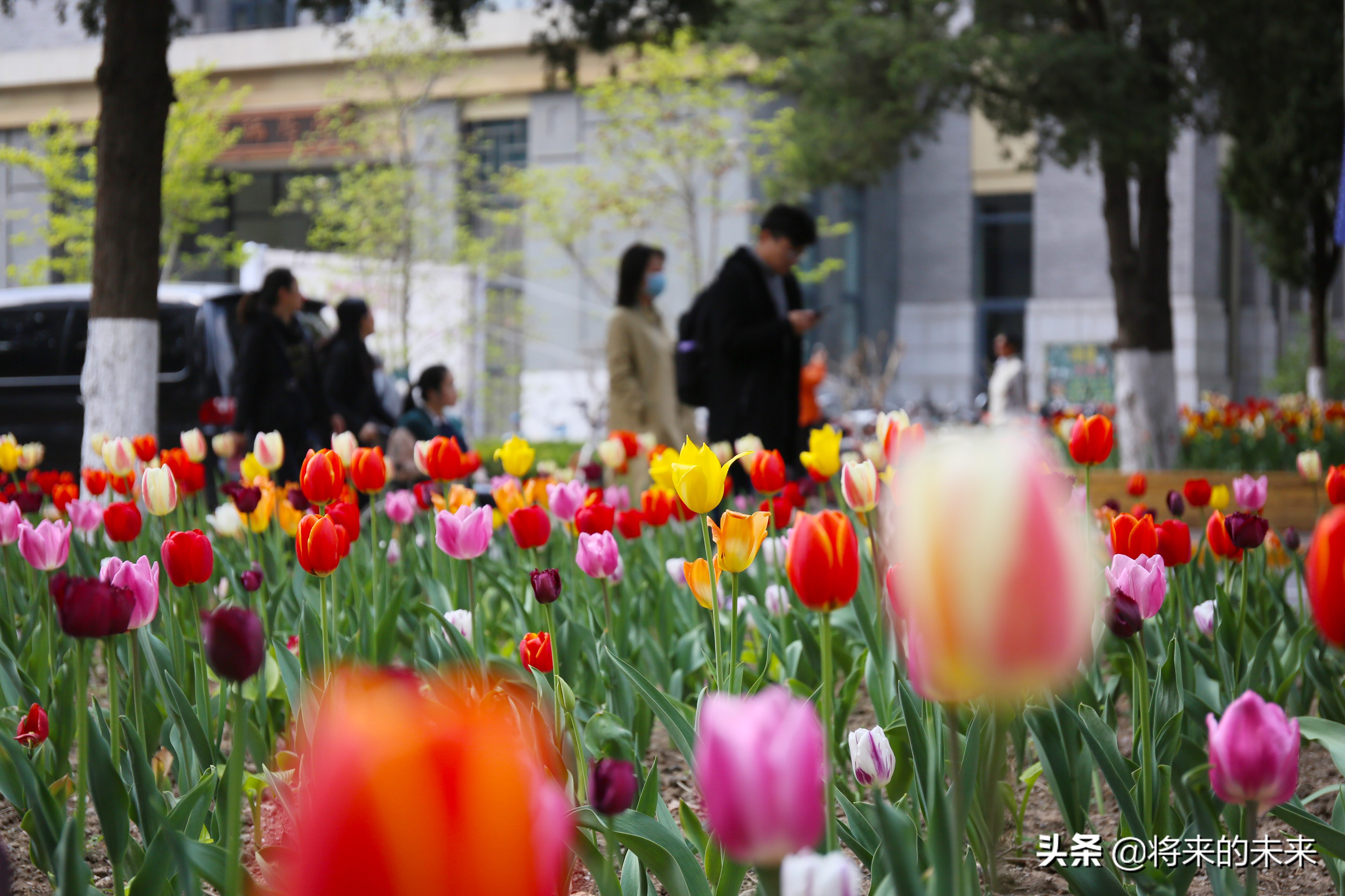 整个校园四处可见盛开的郁金香,数万支把校园变成花海,在校园里空气中被香气弥漫着,让师生很是自豪,尤其看到自己栽种的盛开着花朵。