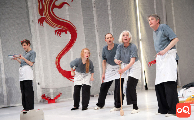 《金龙》是一个喜剧感很强的剧本,剧中由5个演员分别扮演15个角色,48个场景切换,但演员和角色之间总是出现错位,如由年长演员扮年轻角色,男扮女,人扮动物等。不仅如此,在舞台上这些演员不仅仅要不断的跳进跳出,还有为下一个角色准备换装忙的不亦乐乎。甚至安安静静的一场戏也被设计成了方言戏使得全剧喜感大增,但在欢笑之余他们随时能让你感到动容。