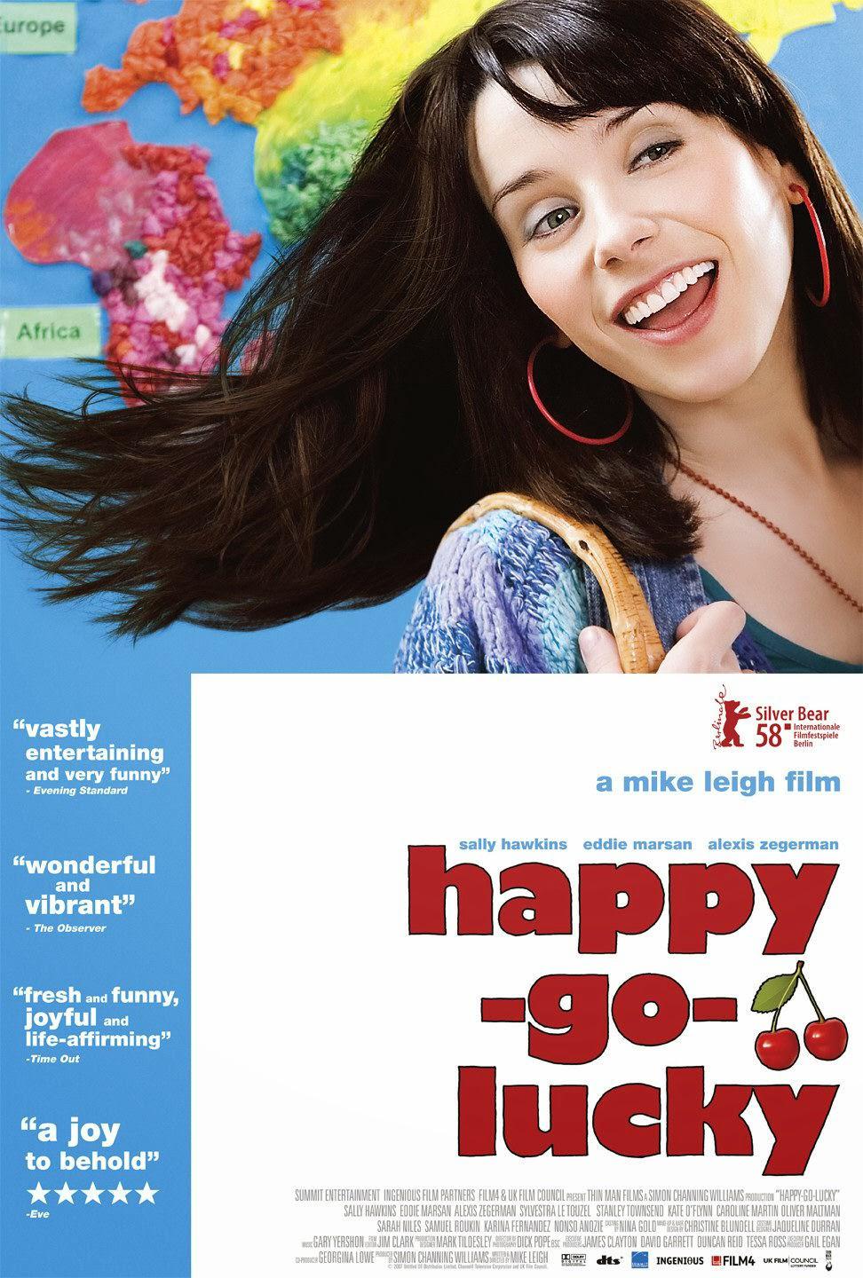 《无忧无虑》原名 happy-go-lucky,是迈克·李,在2008年导演的电影。主演莎莉·霍金斯,也是后来奥斯卡获奖电影《水形物语》的女主角。