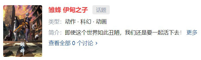 《雏蜂 伊甸之子》是由有妖气出品、震雷动画制作的2d动画,改编自有妖气旗下漫画《雏蜂》。动画自11月18日在优酷独播,至今已经播出4集,然而无论是在豆瓣、微博、b站、知乎等社交平台上,围绕这部动画的话题讨论寥寥。只有在拥有2万用户的《雏蜂》贴吧里,才能看到有原著漫画粉丝在发布这部动画的消息。