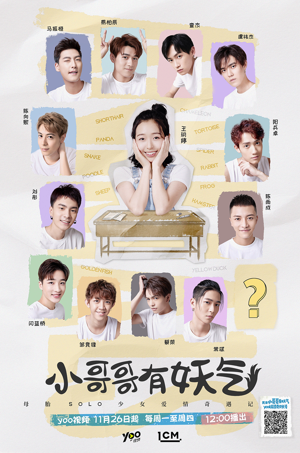 今日,由yoo视频、1cm领誉出品,光线传媒联合出品,王玥婷、查杰、虞祎杰、马振桓、易柏辰、陈向熙、蔡荣、阳兵卓、闪蓝桥、常斌、刘彤、陈雨成、邹竞锋领衔主演,火箭少女101 sunnee杨芸晴特别主演的恋爱幻想微剧《小哥哥有妖气》首度曝光预告片。该剧讲述的是专业学习动物行为学的母胎solo少女王玥婷,遇到身边的小动物变成小哥哥陪伴左右,并给她带来不同治愈的奇幻经历。剧集将于11月26日起,每周一至周四中午12:00在yoo视频上线播出。