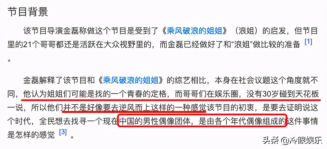 至于为什么要找不同年龄段的男艺人,因为节目要做一个“由各个年代偶像组成的中国男性偶像团体”。
