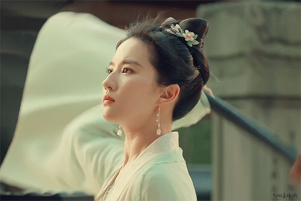 但当她刷着扇子出场,皓腕轻转罗扇,含情双眸流转。耳坠轻巧灵动,时光仿佛静止,那景,那群人,仿佛都渐渐消失,一片白茫茫中,你只看到一个人,刘亦菲饰演的赵盼儿。