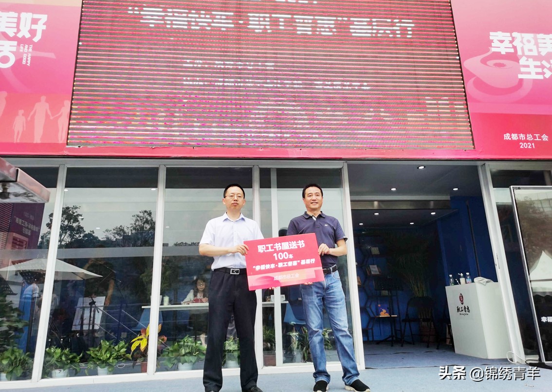 现场还开设了庆祝中国共产党成立100周年的主题宣传展览,成都市总工会向青羊区总工会赠送了“建党100周年”精选图书。