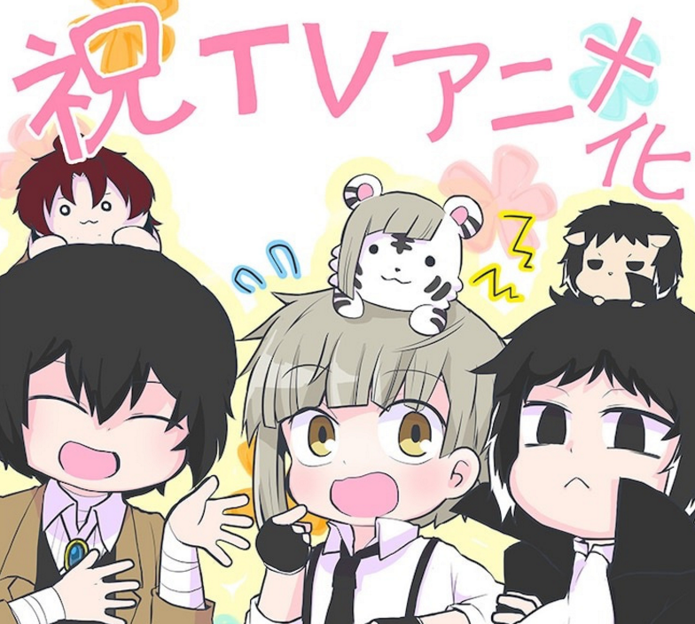 之后,由朝雾卡夫卡负责原作脚本,かないねこ负责作画,推出了《文豪野犬汪》。《文豪野犬汪》是一部q版作品,采用轻松欢快的故事剧情,讲述了一些比较日常系的故事,也是比较可爱的。目前,《文豪野犬汪》动画已经定档,将于2021年1月份推出,直到我们期待。