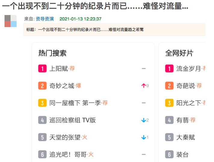 “一个出现不到二十分钟的纪录片而已……难怪对流量趋之若鹜”。