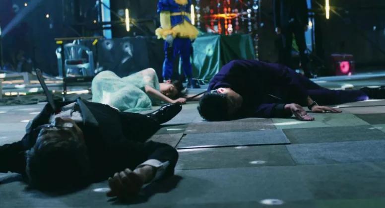 最高潮的一场戏里,主角悉数被飞刀扎死,熟悉套路的观众应该一眼就能看穿,绝壁都是假死。
