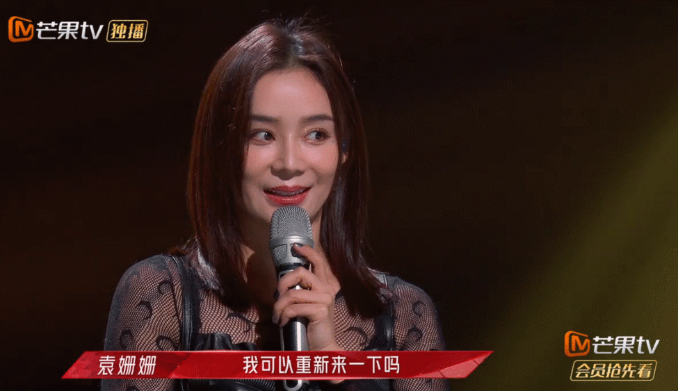 结果袁姗姗在台上唱着唱着忘词了,第一反应还是要求重新来一遍。