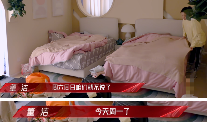 最后还有一点很奇怪,也不知道是不是对话不够完整,按照董洁提到的规则,周六日顶顶是可以玩手机的,董洁打电话时候应该是周一的早上,她还没去训练正在整理床铺,这时候就已经训上孩子了,逼的是不是有点太紧了?