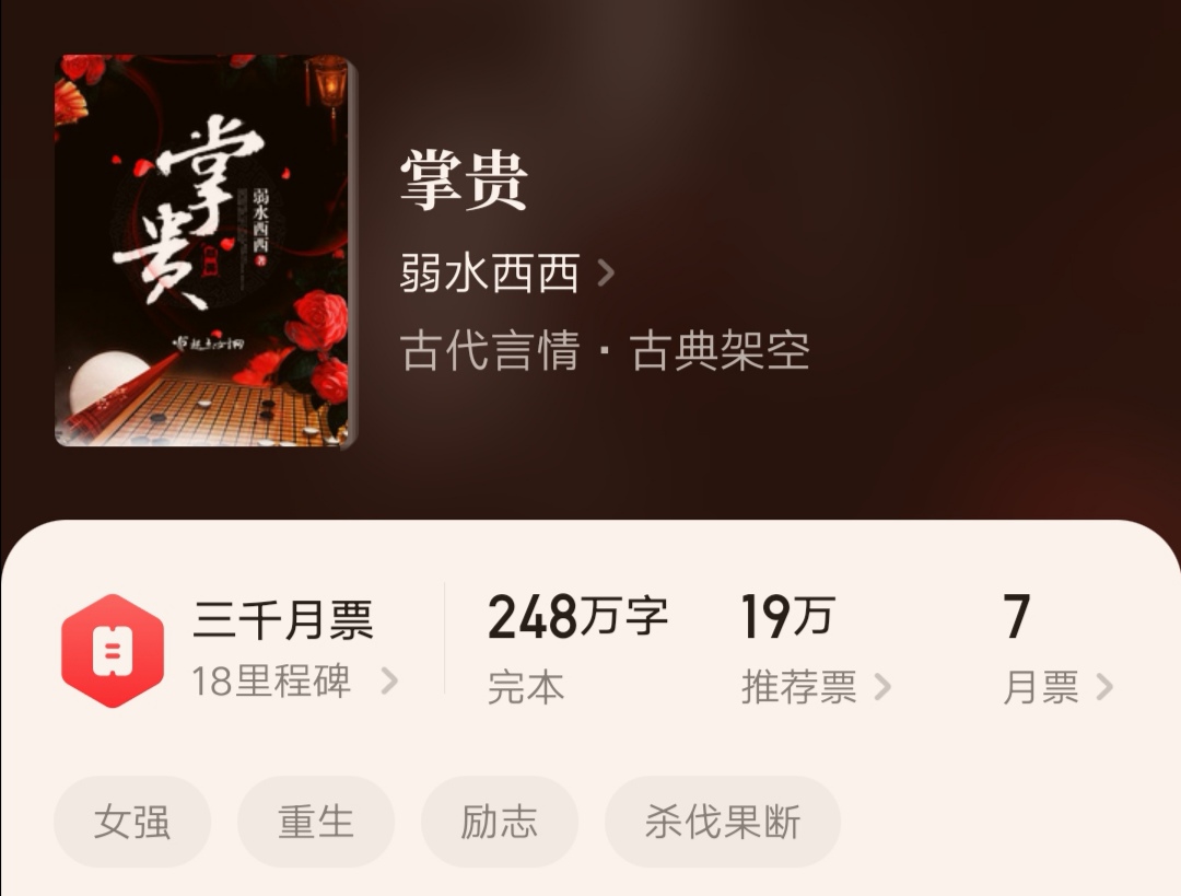 6、《掌贵》,作者弱水西西,全文250万字左右。