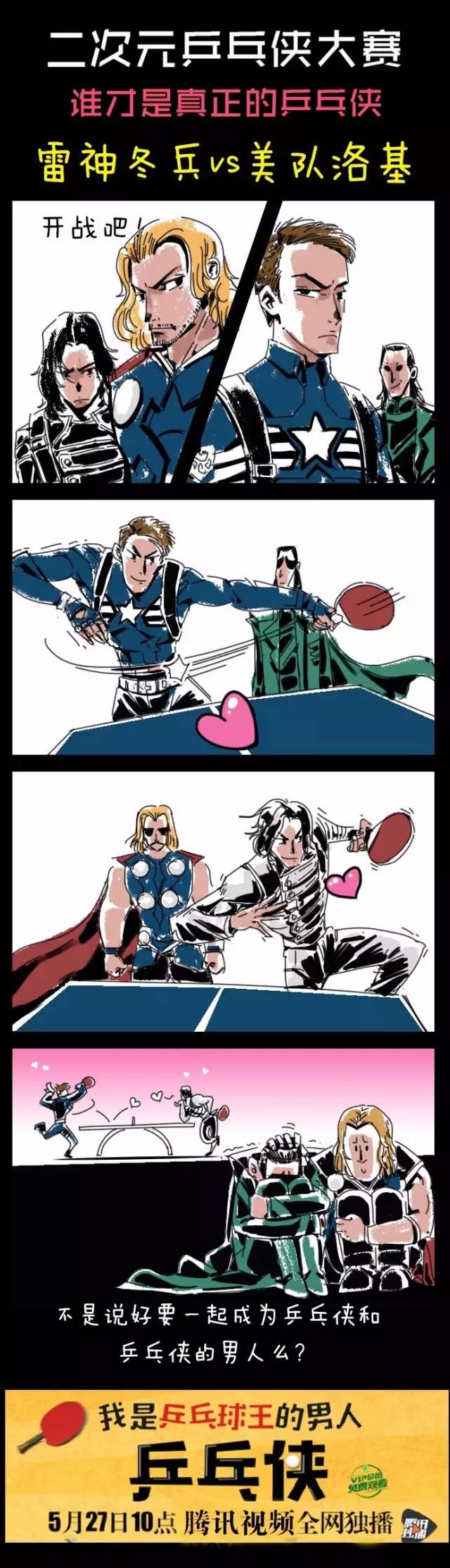 说好的男子双打呢?秀恩爱去死好吗?!!!!美国队长实在是为数不多的我个人喜欢的漫威角色,趁他还没成为反派之际,你们要不要去腾讯视频的《乒乓侠》中再度领略他的风采呢?
