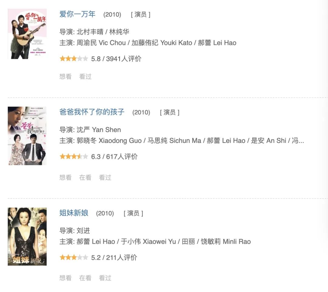 郝蕾的商业价值大打折扣,找到她的女一号越来越少,她在各种配角或者烂剧上散发微弱的光芒。
