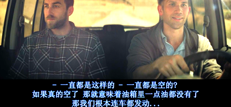 8. 逃出后,哥俩关于加油的对白,弟弟是一个认死理儿,喜欢较真儿的人,但是没有把那句“没有油的话,车根本就发动不起来……”的话说完,此时哥哥说:“你也发现了……”这个对白说明,此时哥俩已经明白,他们并没有逃出轮回。