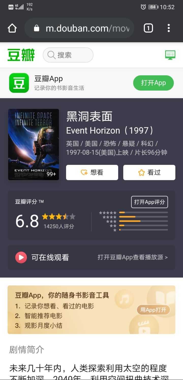 评语:100%彻头彻尾的克苏鲁世界观电影,毕竟是史蒂芬金操刀。触手、未知生物、异世界、疯狂的人性、科学探索的深渊,克苏鲁系的关键词都有。全片无尿点,精彩刺激,随着未知的迷雾,剧情的发展也难以预料。只是这个结局为什么要让人绝望的不寒而栗,难道是因为男主他们没有选择相信神嘛?早知道当时就该在那些疯狂的人群面前跪下高喊“哈利路亚”!其实,没有所谓的信仰,根本原因是男主为什么不能再坚持一下。