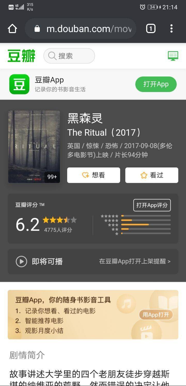 黑森灵故事简介:故事讲述大学里的四个老朋友徒步穿越斯堪的纳维亚的荒野,然而错误的决定让他们深入北欧神话传说中的神秘黑森林,一个古老邪恶的生物也盯上几个人。