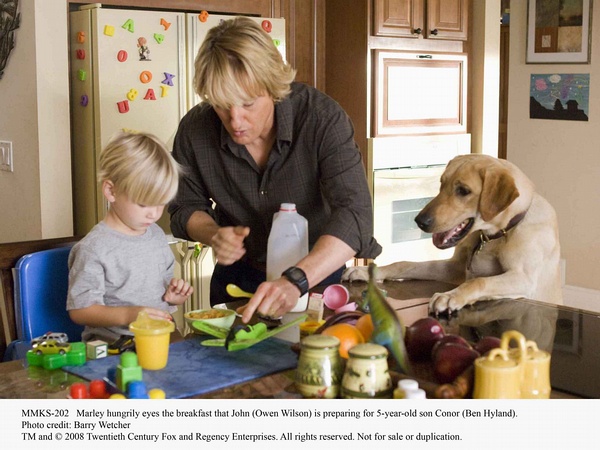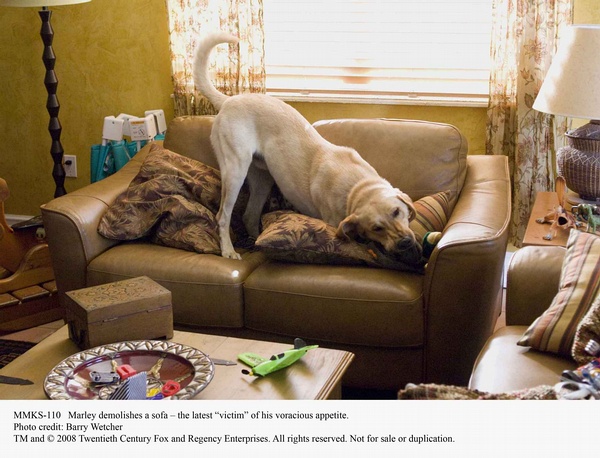 拉布拉多马利就此走进了他们的家庭。马利是个极其多动的小狗,四处惹麻烦,连宠物训练学校都拿它没有办法。