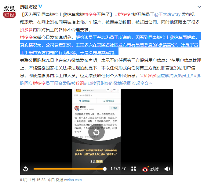 而官方给出的理由也很魔幻——“并非为员工所说的,因看到同事被抬上救护车而解雇“而是“他多次网上匿名发布极端言论”。