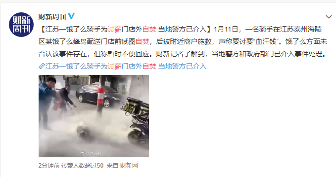 一位外卖骑手讨薪无门,选择自焚。