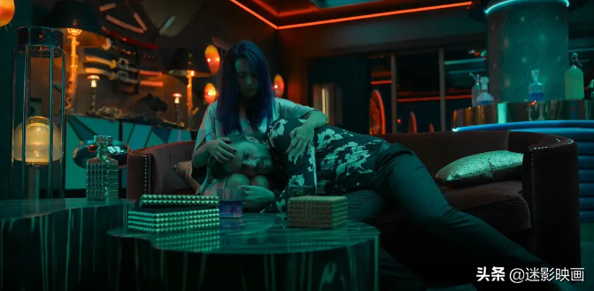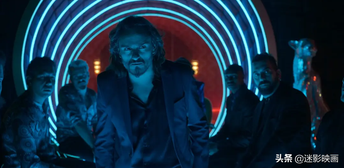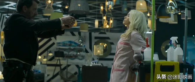 片中的黑色幽默桥段更是比比皆是,比如作为大反派的老板罗密欧,他的办公室里赫然写着中文的“充满爱”三个字,与他行事乖戾狠毒的作风形成了鲜明的对照,颇具讽刺意味。