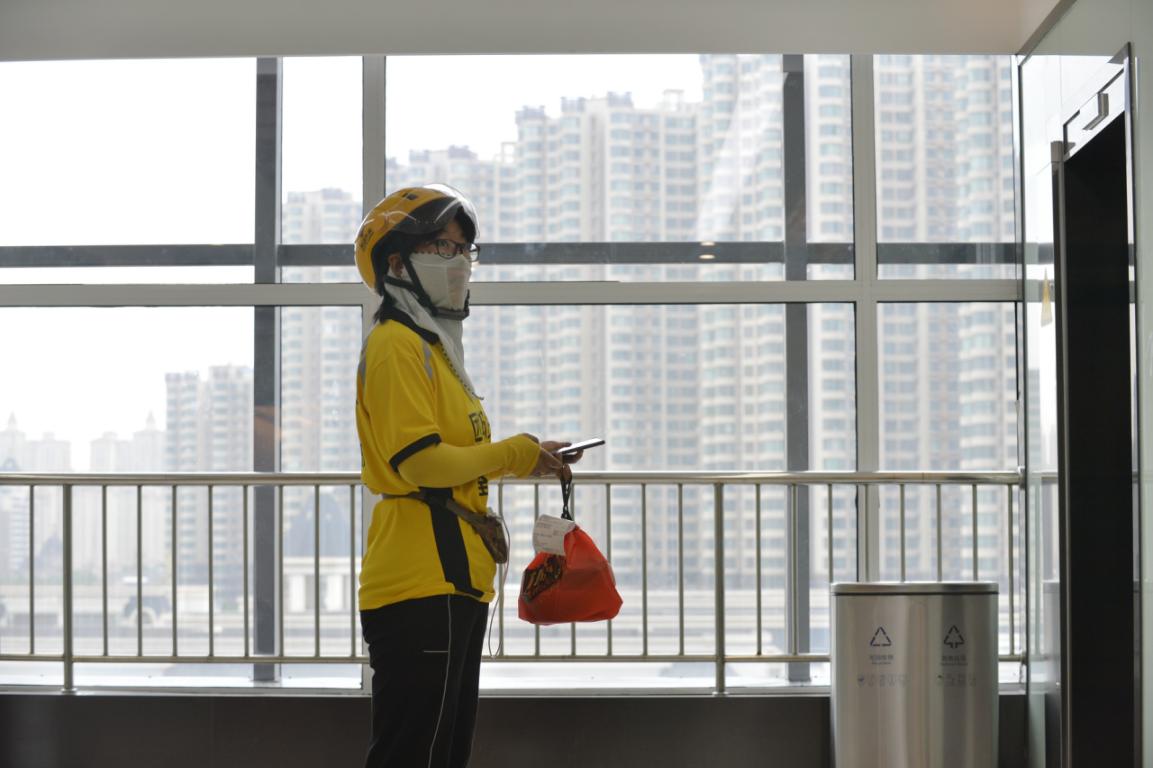 杨雨静在送餐途中。